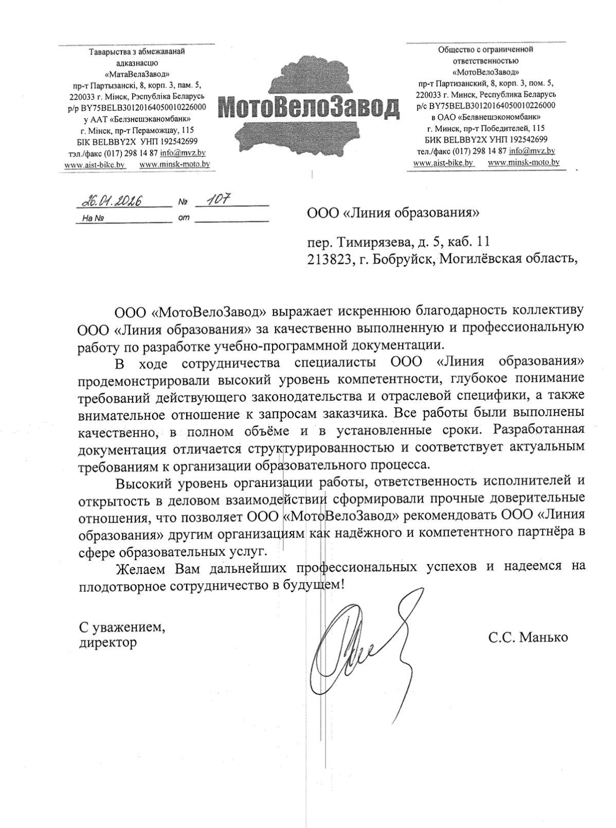 Юридический (почтовый) адрес:213823, Республика Беларусь, Могилёвская область, город Бобруйск, переулок Тимирязева, дом 5, кабинет 11