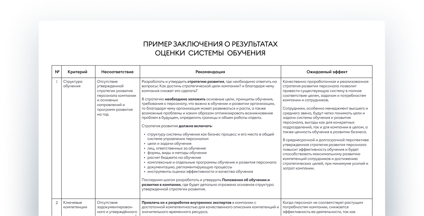 1. Отчет по качеству обучения компании. Сильные стороны и зоны роста