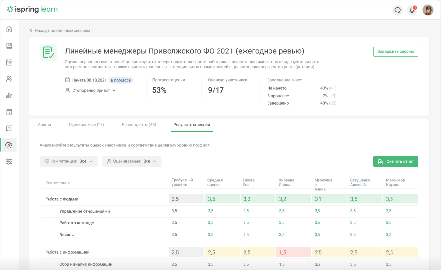 Поможет выявить сильные стороны и точки роста сотрудников, а также понять, насколько он соответствует должности