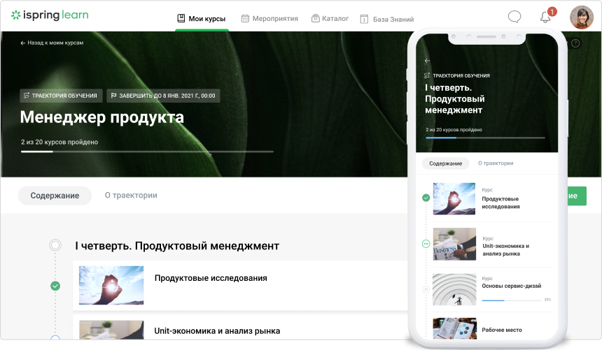 iSpring Learn возьмет на себя всю рутину: отправит уведомление о назначении курса, напомнит о скором дедлайне и соберет отчет по результатам